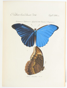 First edition of this rare lepidopterological iconography. With lith. portrait and 700 hand-coloured engr. plates. - Some browning and foxing to places. Some plates more heavily browned and with occasional off-setting from text to plate. Contemporary green half-morocco, spine gilt; slightly rubbed.