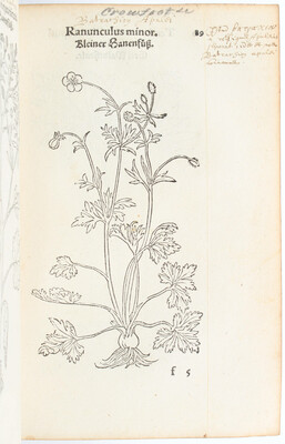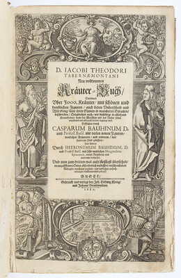 VD 16, B 6019; IA 120.595; Nissen, BBI 182; Stafleu-C. 575; Hunt 81. - Fünfte Ausgabe des erstmals 1539 erschienenen Kräuterbuches, eines der schönsten des 16. Jahrhunderts, mit den bekannten Holzschnitten von David Kandel, davon einige figürlich belebt. - Stellenw. fleckig oder etwas wasserfleckig; ca. 40 Bll. in der unteren Innenecke mit rötlich verfärbtem Wasserfleck; Bl. 393 u. 394 mit ergänzten Randabrissen, dadurch Verlust an den gedruckten Marginalien; zu Beginn u. am Ende mit hinterlegten Randläsuren, wenige restaurierte Einrisse bis in den Text; Porträt mit Riss bis in die Bordüre, dieser verso mit Archivband geklebt; Bl. 410 u. 411 mit etwas Bild- u. erheblichem Textverlust durch große ergänzte Abrisse, der Text handschr. ergänzt. Es fehlen der Titel mit dem Wappenholzschnitt verso sowie die Bll. c3-6 (die ersten 4 Bll. des Registers über die deutschen Namen); die fehlenden Bll. in Kopie ergänzt.
