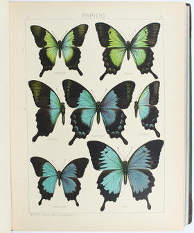 Freyer, C. F. Neuere Beiträge zur Schmetterlingskunde mit Abbildungen nach der Natur. 7 Bde. Augsburg 1833-1858. 4to (22:18,5 cm). Mit lith. Porträt u. 700 kol. Kupfertafeln. Grüne Hmaroquinbde. d. Zt. mit Rvg. u. goldgepr. Rückentitel; gering berieben.