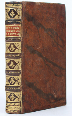(Wezel, J. C.). Ueber Sprache, Wissenschaften und Geschmack der Teutschen. Dans la republique des lettres les opinions sont libres. De la litterature allemande. Leipzig, Dyk, 1781. (16:10 cm). XVI, 328 S. Marmorierter Ldr. d. Zt. mit Rückenschild, reicher Rückenvergoldung und roten Kleisterpapier-Vorsätzen. Gering berieben, wenige kleine Wurmspuren.