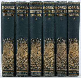 Dresser, H. E. A history of the birds of Europe, including all the species inhabiting the Western Palaearctic region. 9 Bde. London 1871-1896. Gr.-4to (32,5:27 cm). Mit 9 lith. Titeln u. 723 (721 kol.) lith. Tafeln u. einigen Textillustr. Bde. 1-8 grüne geglättete Maroquinbände d. Zt. mit goldgepr. Rtitel und etwas Rvg, dreifach goldgepr. Deckelfileten, Goldschn. u. Innenkantenvergoldung (sign. R. H. Porter); Bd. 9 Ldr. d. Zt., uniform gestaltet, Deckel mit leichten Kratzspuren und tlw. etwas beschabt, Ecken u. Kanten vereinzelt gering berieben oder bestoßen.