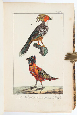 Buffon, G. L. L. de. Oeuvres complètes. Planches. Oiseaux (apart). Paris, 1832. (22,5:15,5 cm). Mit 238 (statt?) kol. lith. Tafeln. Hldr. d. Zt., lädiert. - Dazu: T. R. Jones. Cassell's book of birds. From the text of Dr. (A. E.) Brehm. 4 Bde. London (1869-73). 4to (27:19 cm). Mit 420 teils blattgr. Textholzst. Hldr. d. Zt. mit Rvg. u. Rsch., gering berieben.