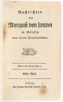 Seltene deutsche Ausgabe des 1777 erschienenen Briefromans "Memoirs of the Marchioness de Louvoi" der schottische Schriftstellerin Mary Walker (auch Mary Hamilton, 1736-1821). - Gebräunt u. stellenw. etwas fleckig; erste Bll. innen mit kl. Randläsur.
