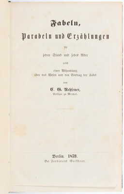 Selten. Reichhaltige Literaturanthologie mit Erklärungen, nach Gattungen geordnet. 3 Bände u. 1 Supplementband. - Gebräunt u. stellenw. etwas stockfleckig, Vorsätze leimschattig, Bd. 1 S. 1 mit Papierfehler. Feste Vorsätze mit gest. Exlibris der Roslebischen Schulbibliothek, freie Vorsätze mit deren Stempel.
