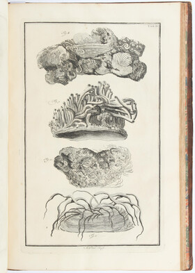 VD18 14819562; Nissen, ZBI 1282; Stafleu-C. 1661. - Erste deutsche Ausgabe. "He established by it the animal nature of this group of organisms" (DNB VI, 703). Die Tafeln zeigen überwiegend Korallen, eine Tafel mit Darstellung eines Mikroskops. - Leicht gebräunt u. nur gelegentlich gering stockfleckig. Eine Tafel mit kl. Randläsur u. Schmutzrand.