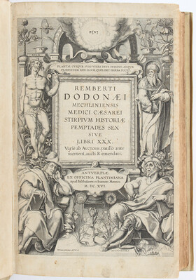 Nissen, BBI 517; Stafleu-C. 1489; Pritzel 2350; Wellcome I, 1824; Hunt I, 201. - Zweite u. letzte lateinische Ausgabe, "the best enlarged and revised edition" (Hunt); gegenüber der ersten Ausgabe von 1583 um ca. 30 Holzschnitte vermehrt. Letztere war eine völlige Neubearbeitung seines "Cruydeboek" von 1554, dem auch der größere Teil der schönen Holzschnitte entstammt. Die übrigen Holzschnitte, u. a. von Dodoens selbst, Clusius u. Lobelius, sind aus älteren, bei Plantin gedruckten Werken entnommen. - Schwach gebräunt u. teilw. gering stockfleckig.