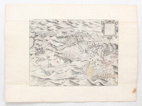 Koeman III, 2850:32; New Hollstein, Doetecum III, 580; Ortroy S. 125/74 u. S. 66. - Selten. Erschien in beiden Ausgaben des berühmten Atlas, hier aus der 2. Ausgabe mit Pag. "Mm". - Mit etwas Plattenton; leicht gebräunt u. fleckig, Ränder stärker. Oben bis an die Einfassung beschnitten.