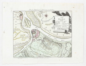 Belgrad. "Plan von Belgrad, Semlin und den umliegenden Gegenden". Altkol. Kupferstich "nach den besten Originalzeichnungen gestochen 1788 - In Wien bei Artaria Compagnie am Michaelerplatz". Mit von einem Adler getragener Schriftrolle mit Titel und Legende 1-14. 23,5:30 cm, darüber französ. Titel und unterhalb dt. erläut. Text.