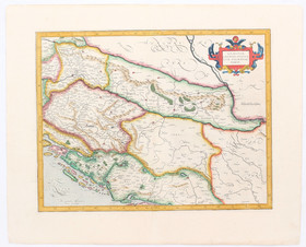 Kroatien und Slowenien. "Sclavonia, Croatia, Bosnia cum Dalmatiae parte" (in 2 unterschiedl. Ex.). - Dazu: "Walachia, Servia, Bulgaria, Romania". - Zus. 3 Bll. kol. Kupferstich-Karten von G. Mercator, davon 2 bei W. Blaeu, ab 1610. Mit ausgem. Kartenschmuck. Qu.-fol.
